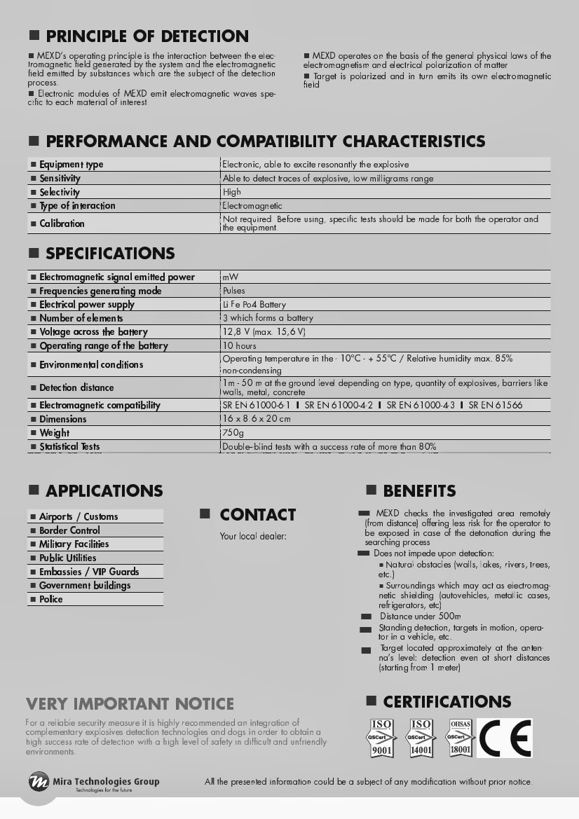 Now we can bring you the brochure for the new version of the 'detector'. The MEXD (Medium Range Explosive Detector) which comes in two versions: